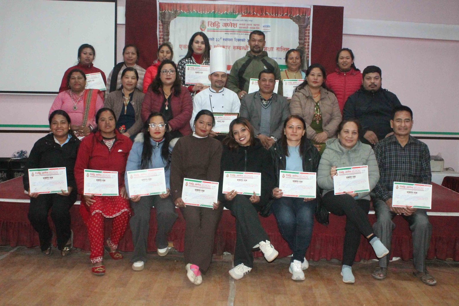 पुस १९, भक्तपुर । सिद्धि गणेश बचत तथा ऋण सहकारी संस्था लि. को ३२औं स्थापना दिवसको अवसरमा लघुवित्त तथा बचत समूह परिचाल उपसमितिको आयोजनामा एकहप्ते पिठोको परिकार सम्बन्धी पाक शिक्षा तालिम सिद्धि गणेश तालिम हल, खँचामा सम्पन्न भयो ।