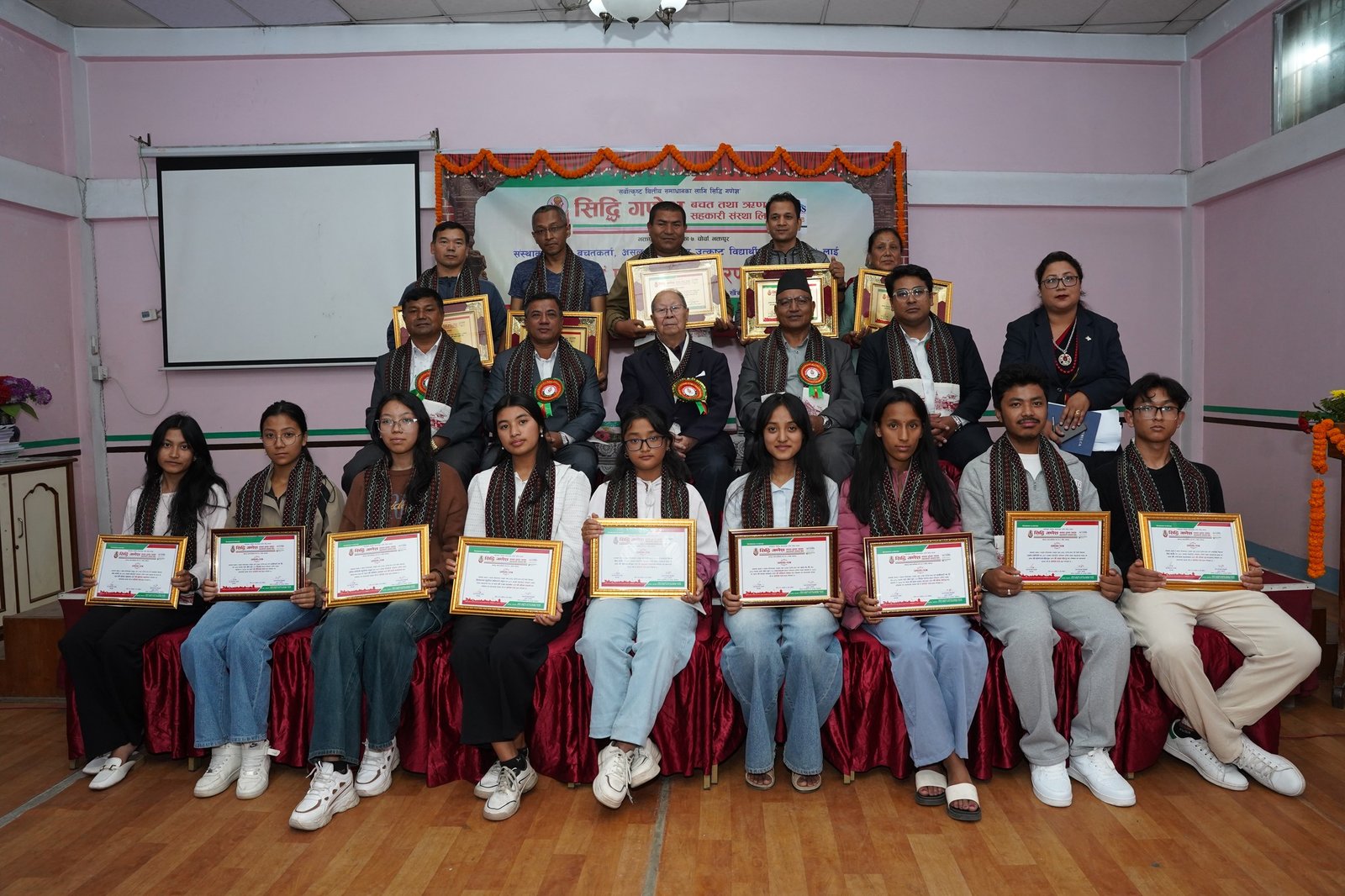 भक्तपुर, २२ कार्तिक । सिद्धि गणेश बचत तथा ऋण सहकारी संस्था लि. को सञ्चालक समितिको आयोजना तथा नेमकिपाका केन्द्रीय अध्यक्ष एवं वरिष्ठ राजनीतिज्ञ नारायणमान बिजुक्छेंज्यूको प्रमुख आतिथ्यतामा संस्थाका असल बचतकर्ता, असल ऋणी तथा उत्कृष्ट विद्यार्थीहरु(SEE र +2)लाई बधाई ज्ञापन एवं प्रशंसा–पत्र वितरण कार्यक्रम सिद्धि गणेश तालिम हल, खँचामा सम्पन्न भयो ।