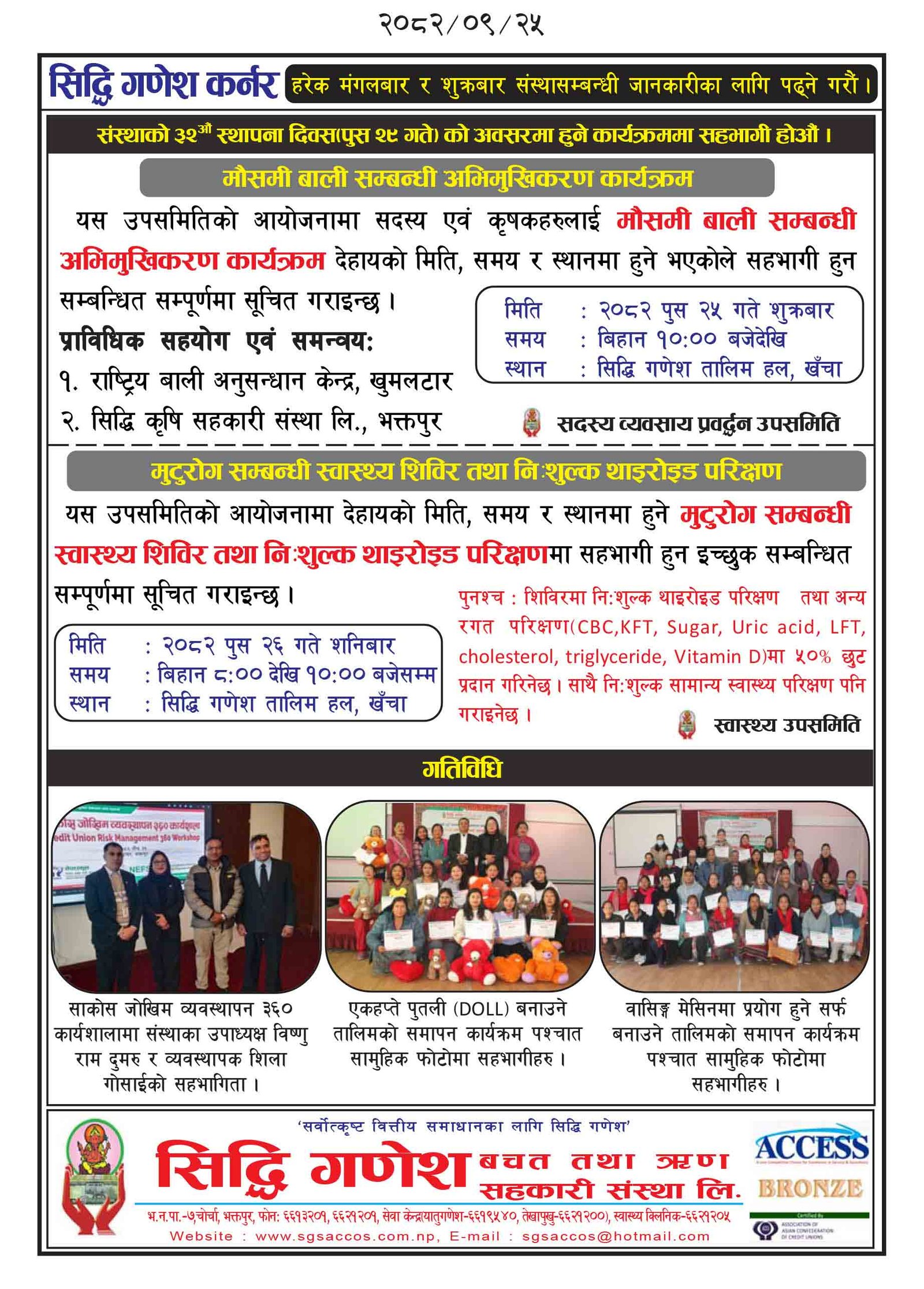 मुटुरोग सम्बन्धी स्वास्थ्य शिविर तथा निःशुल्क थाइरोइड परिक्षण सम्पन्न । पुस २६, २०८२