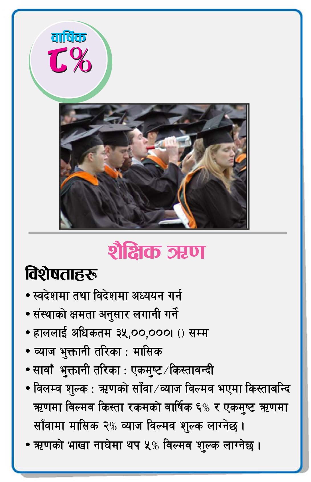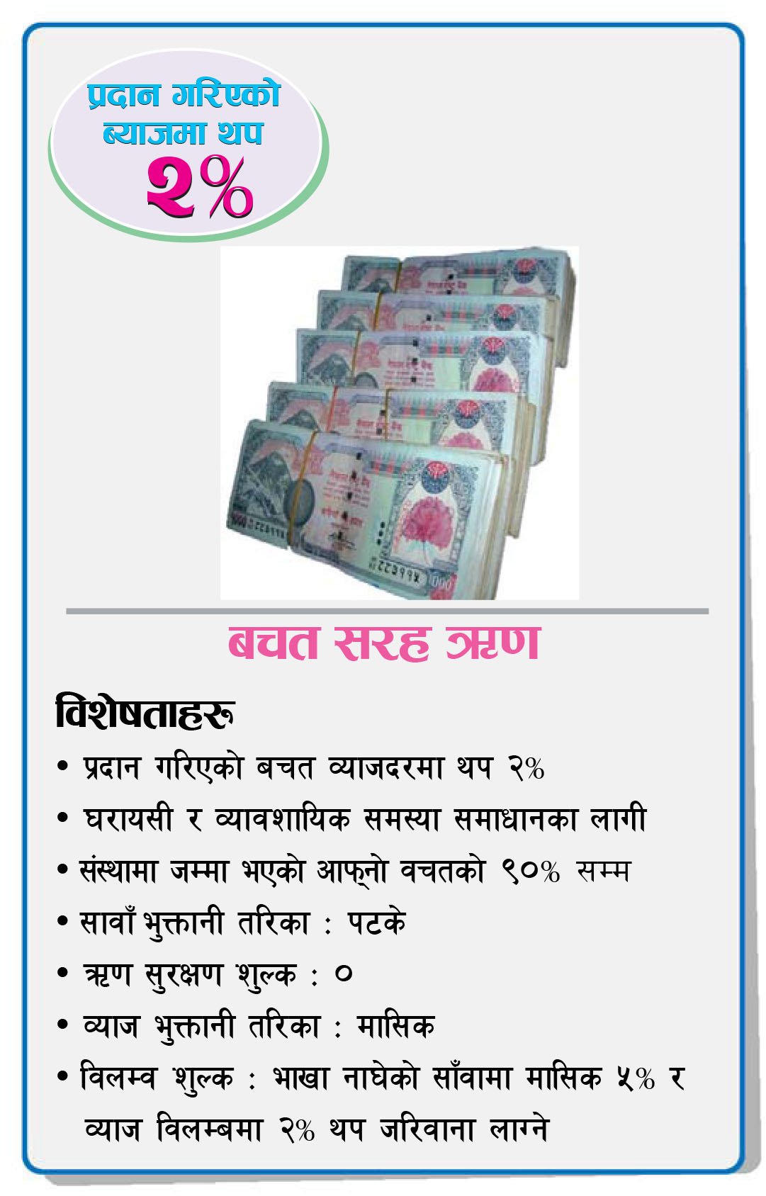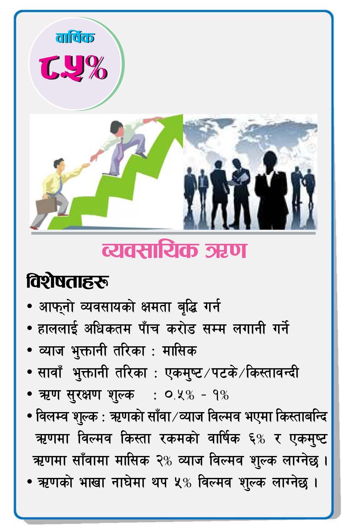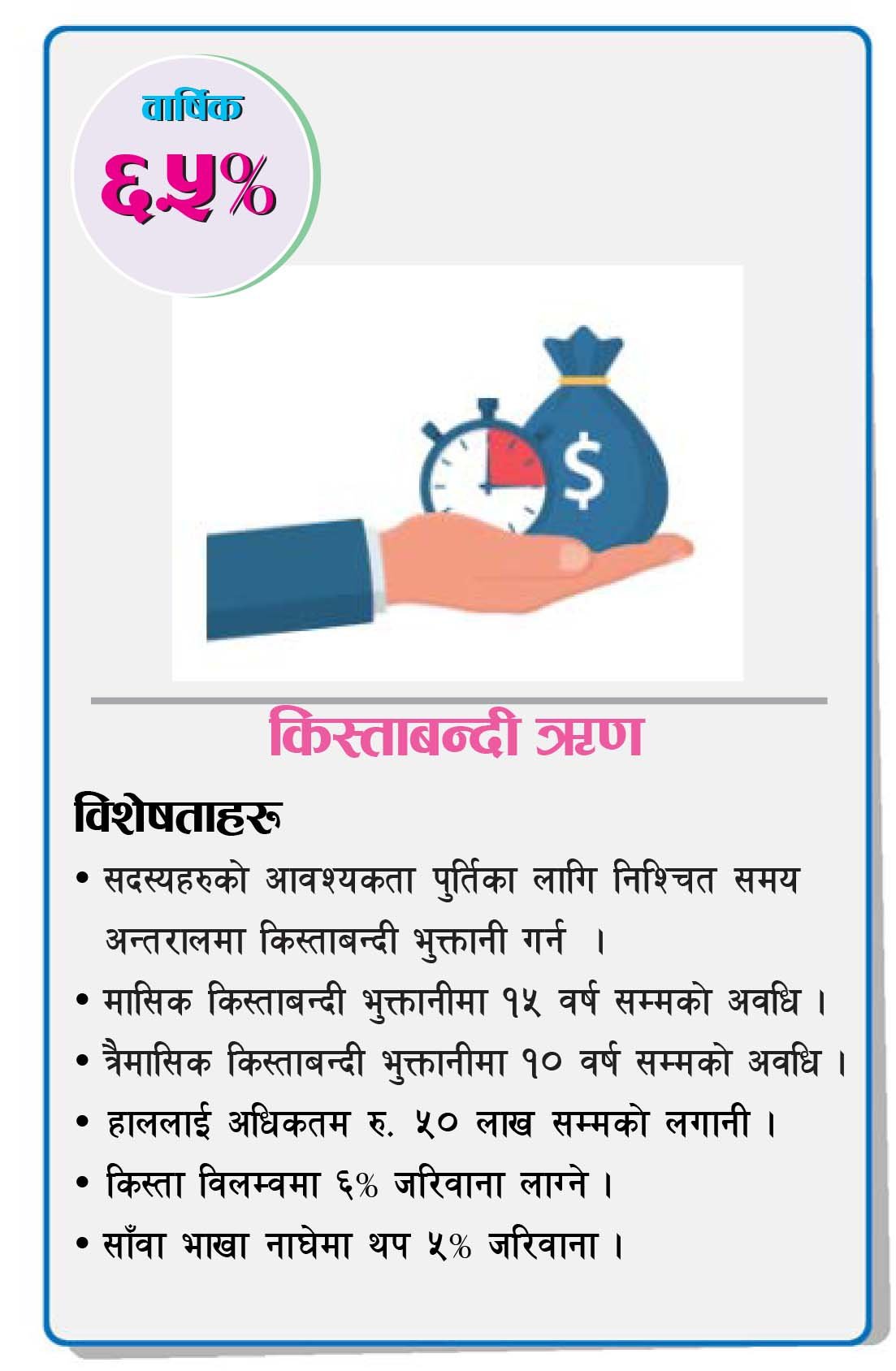 ऋण सम्बन्धी विस्तृत जानकारी प्राप्त गर्न कृपया संस्थामा सम्पर्क गर्नुहुन अनुरोध छ।